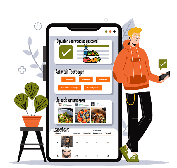 - Keuzevrijheid: Medewerkers bepalen zelf hun gezonde activiteiten en scoren daar punten voor in de app.